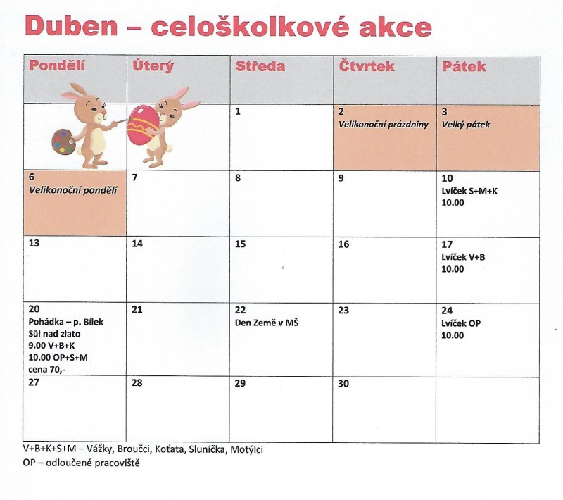 - červenec - zavřeno, provoz je v MŠ Sedmikráska
